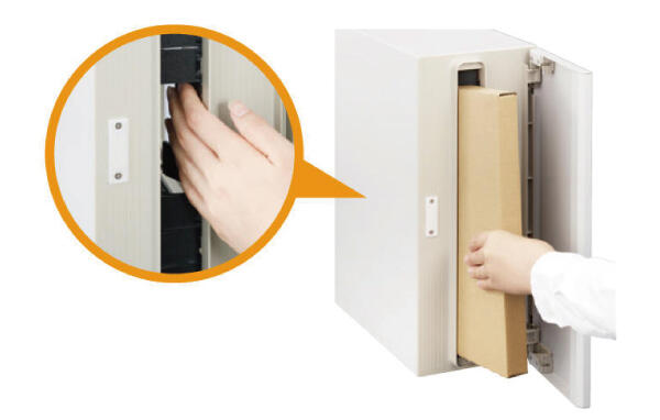 2047通りの番号設定ができ、開錠するたびに設定した番号がリセットされる仕組みです。他人に番号を知られる心配もなく、荷物の取出時にも鍵は不要です。