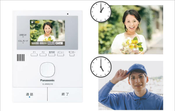 留守中の来訪者をモニター親機に、1件あたり8枚の連続画像を最大50件まで録画可能。