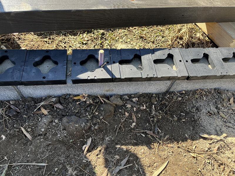 ブロック基礎に基礎パッキン工法!これで通気性も抜群です。壁面はネットでスッカスカですがw