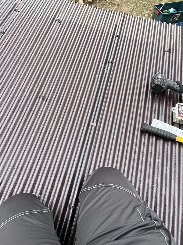 前回、釘を打てども中々できずに苦戦した波板貼りも、下穴を開けビス止めにする事で施工性も大幅UP!普通に釘を打つとバインバインして打ち込めず><