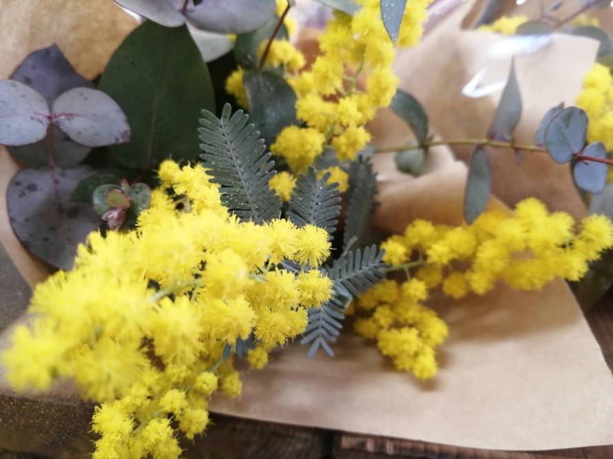 この季節、大人気のミモザ。ふわふわの明るい黄色で気分も明るくなりそう♪