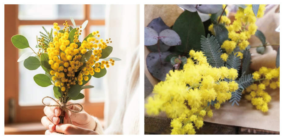 この季節、大人気のミモザ。ふわふわの明るい黄色で気分も明るくなりそう♪