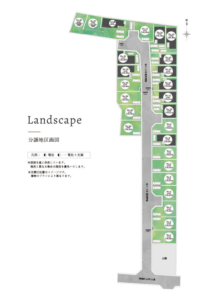 全26区画の分譲地内に公園が併設された大型開発分譲地。 -