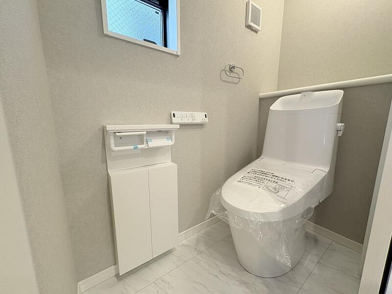 汚れが付きにくくキレイを長く保つ「アクアセラミック」を使用。便器はフチレス形状で掃除もサッとラクラク! -