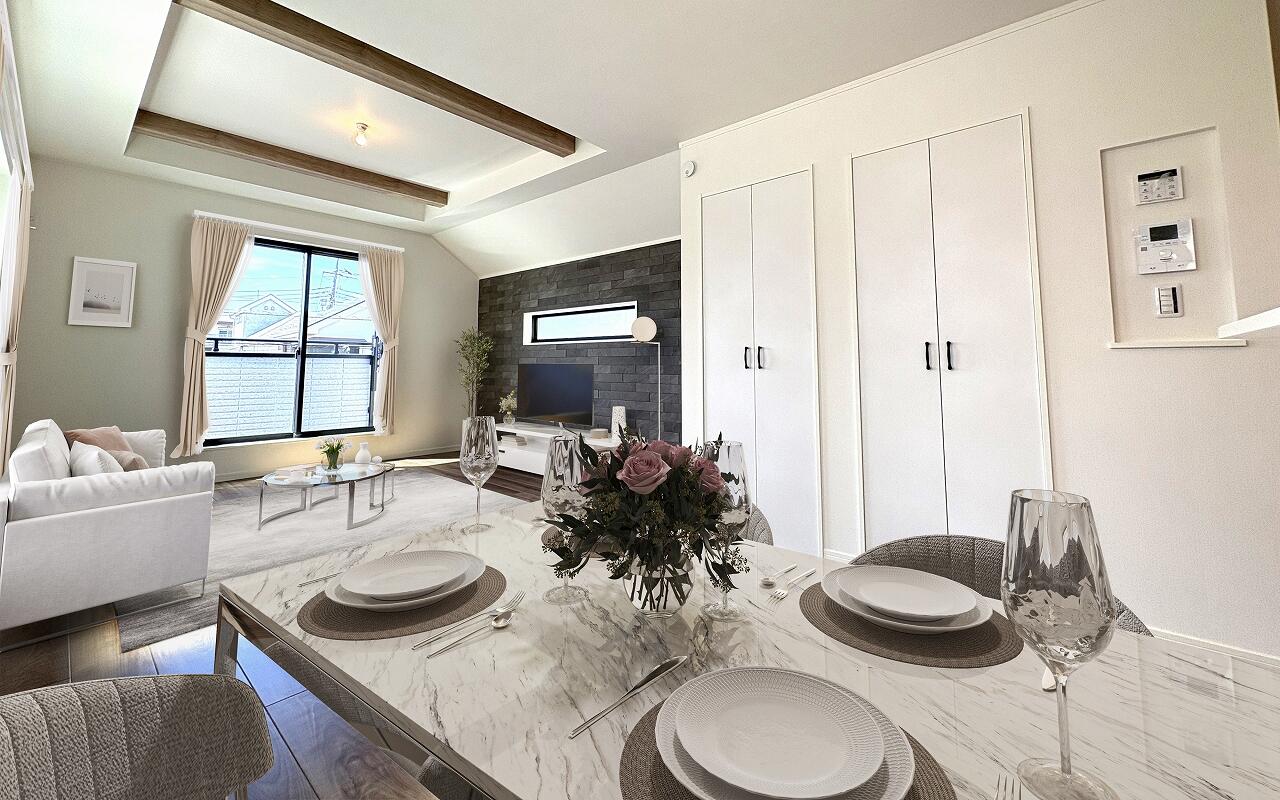 練馬区東大泉6丁目2期 限定1棟3LDK/そらいろ空間(屋上)/18.4帖LDK/2階リビング/折上天井/全居室収納完備/リビング収納/床下収納/対面式キッチン/バルコニー/2台カースペース(車種による)