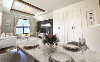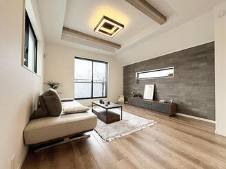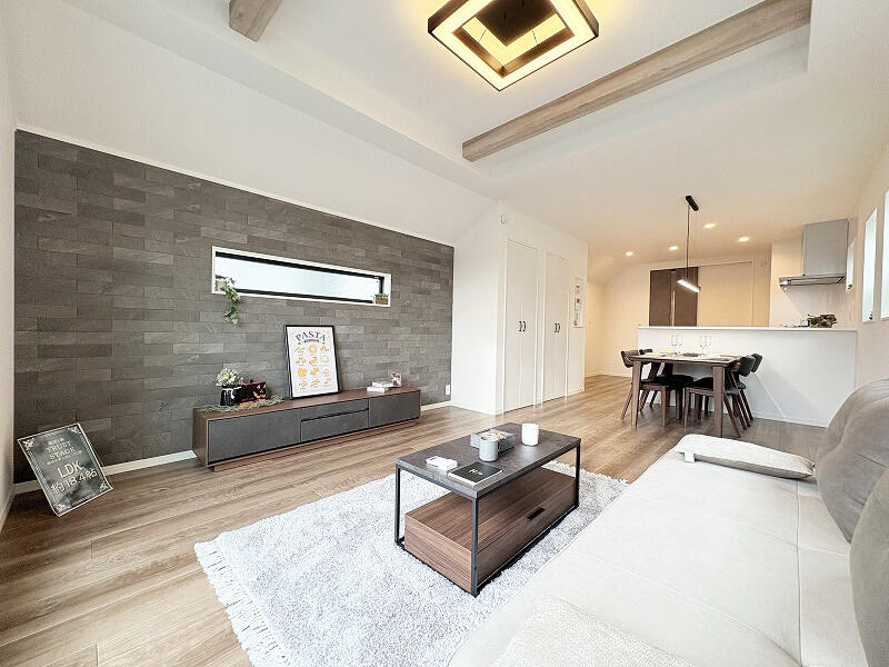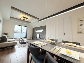 アクセントクロスや折上天井を採用しお洒落かつ開放感溢れる空間に仕上がっております。※画像には家具等のオプション商品も含まれます。 -