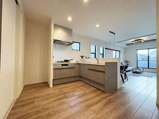 対面式のキッチンなので作業をしつつお子様の様子を見守ることができ安心です。※画像には家具等のオプション商品も含まれます。 -
