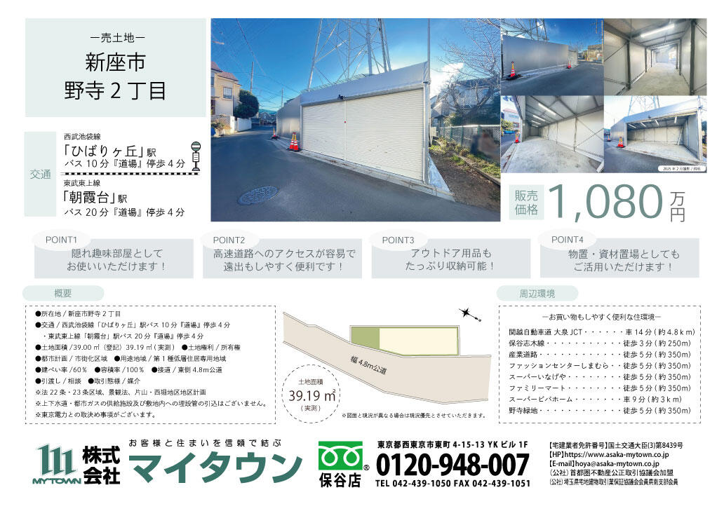 | 物件名 | 新座市野寺2丁目 建築条件無売地 全1区画 |