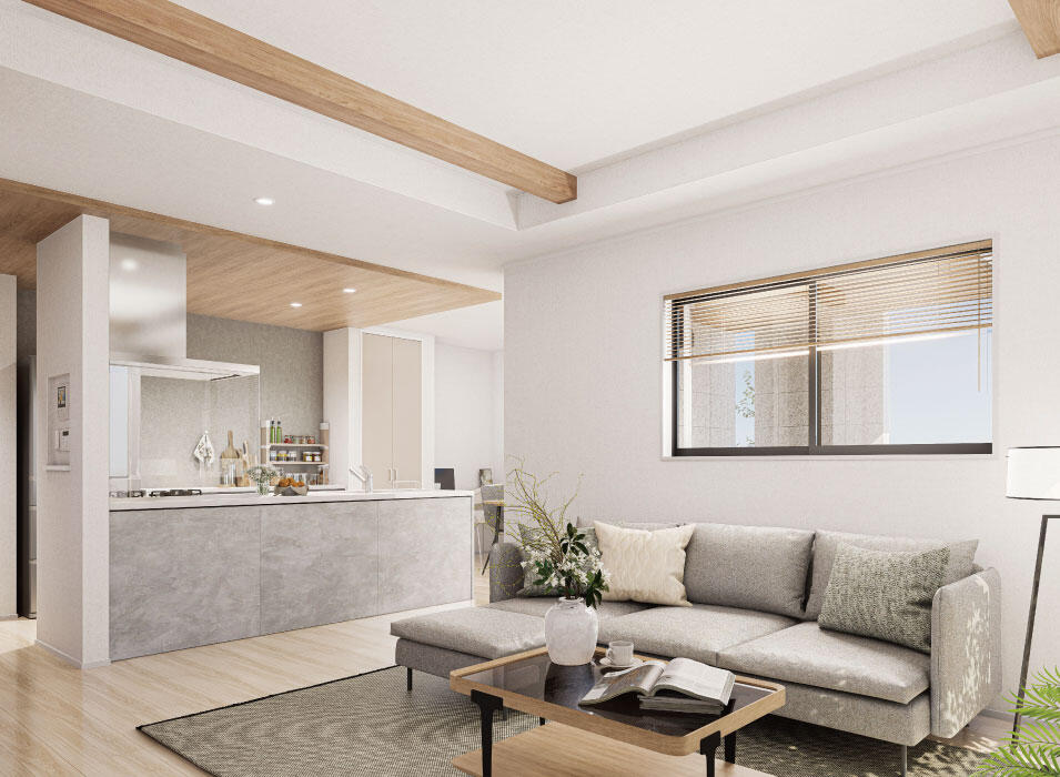 居心地の良いキッチンを中心とした、家族の輪が深まる温かなリビングダイニング。