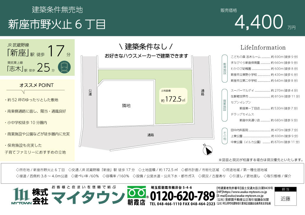 物件名 | 新座市野火止6丁目 建築条件無売地 全1区画 |