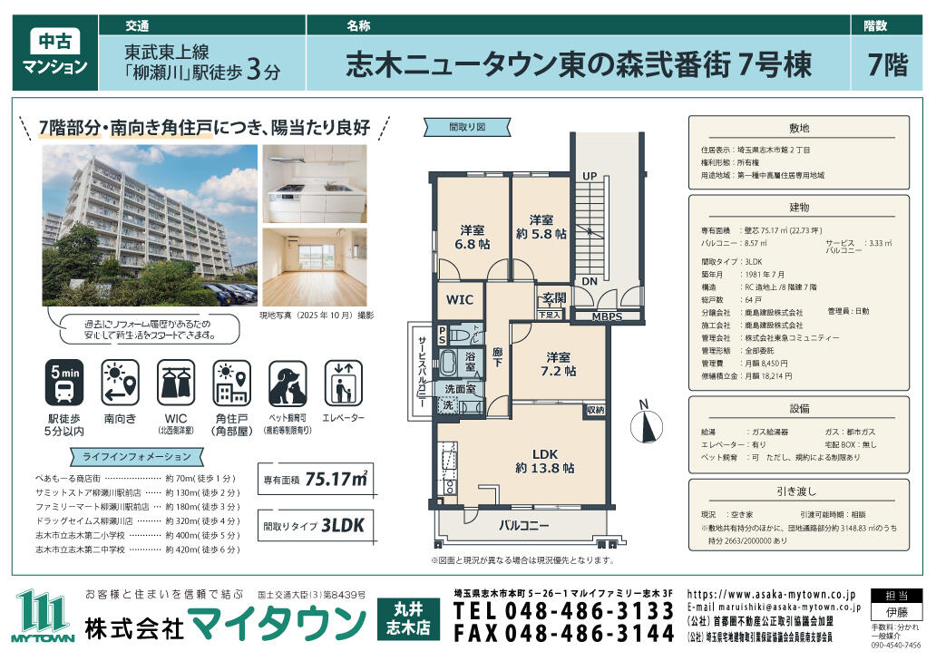 物件名 | 志木ニュータウン東の森弐番街7号棟 7階部分 |