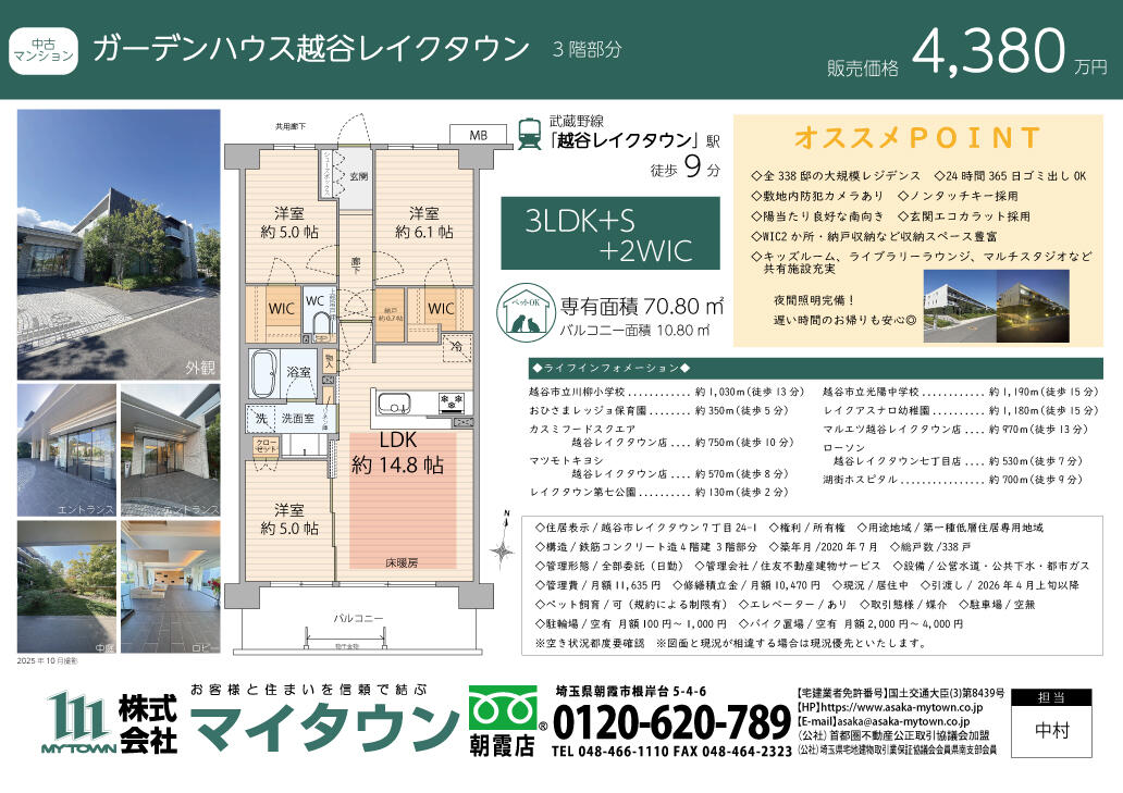 | 物件名 | ガーデンハウス越谷レイクタウン 3階部分 |