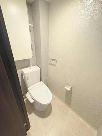 背面の吊戸棚にトイレットペーパーや掃除用具がすっきり収納できます。 -