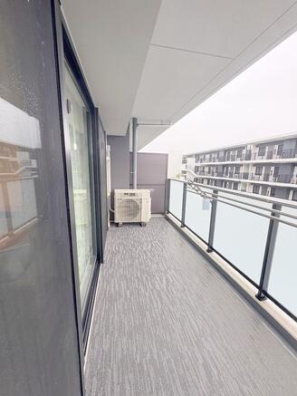 洗濯物が干しやすい南向きのゆったりとしたバルコニー。 -