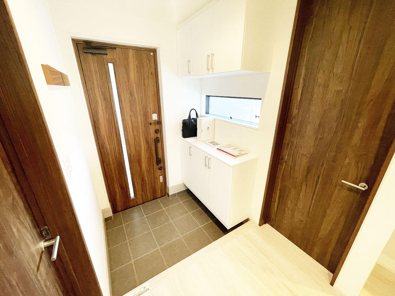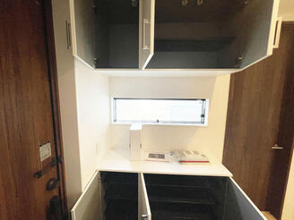 雑貨を飾ったり、外出時のお持ち物や玄関の鍵なども置けるセパレートタイプのシューズボックス