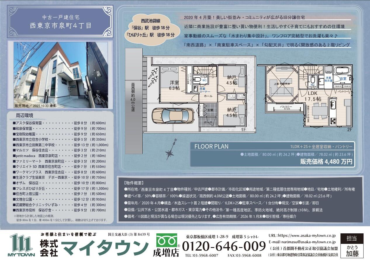 | 物件名 | 西東京市泉町4丁目 中古一戸建住宅 |