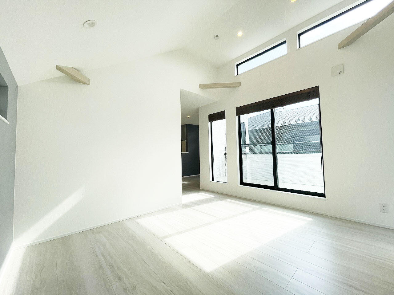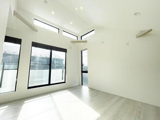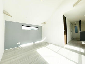 「南西道路」×「南東駐車スペース」×「勾配天井」で明るく開放感ある2階リビング