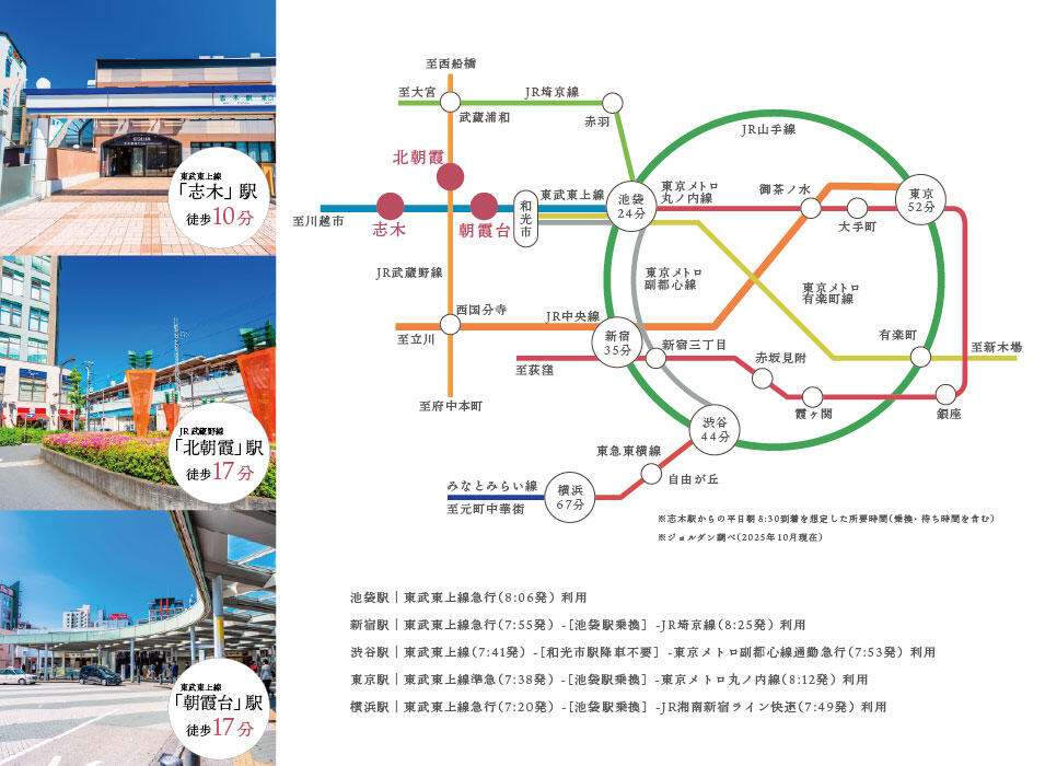 | 交通 | 東武東上線「志木」駅 徒歩10分 JR武蔵野線「北朝霞」駅 徒歩17分 東武東上線「朝霞台」駅 徒歩17分 |