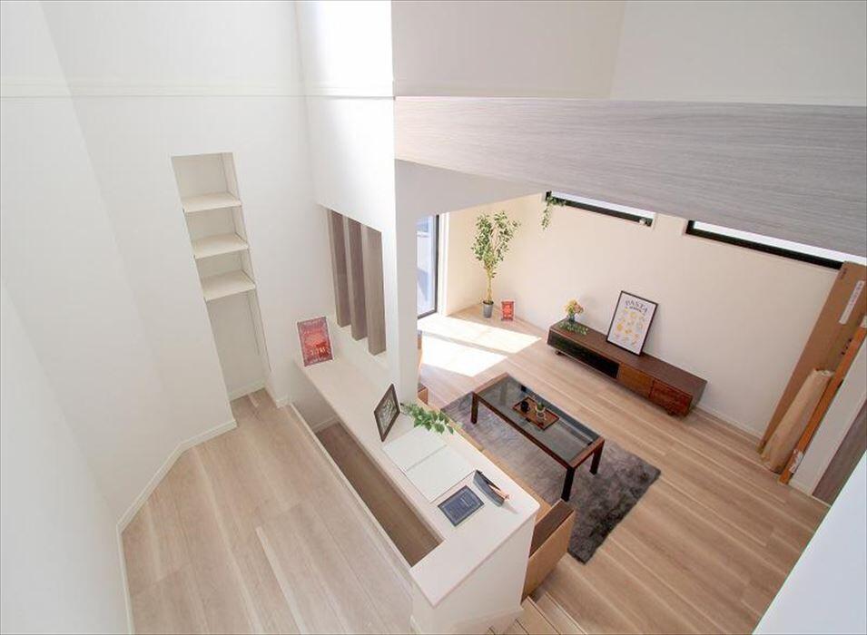 天井高を活かした、ゆとりのあるリビング空間。