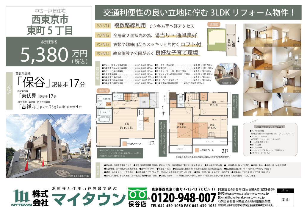 | 物件名 | 西東京市東町5丁目 中古一戸建住宅 |