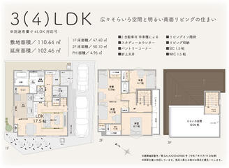 3LDKの間取りですが、将来的には壁の設置で4LDKへの変更も可能です(別途有償)。ライフスタイルや家族構成の変化に合わせて柔軟に対応できる間取りです。 -