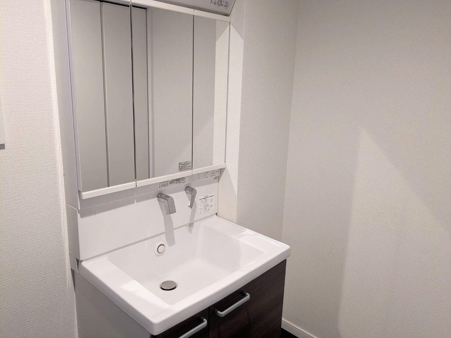 身支度がしやすく使い勝手の良い三面鏡洗面化粧台。 -