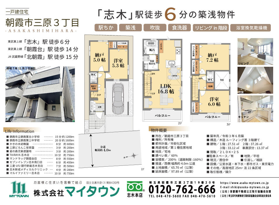 | 交通 | 東武東上線「志木」駅 徒歩6分 東武東上線「朝霞台」駅 徒歩14分 JR武蔵野線「北朝霞」駅 徒歩15分 |