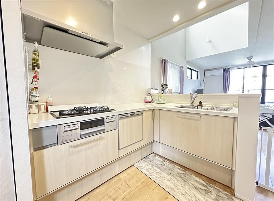 L字型のシステムキッチンは食洗器付きなので家事の時間を短縮できます。