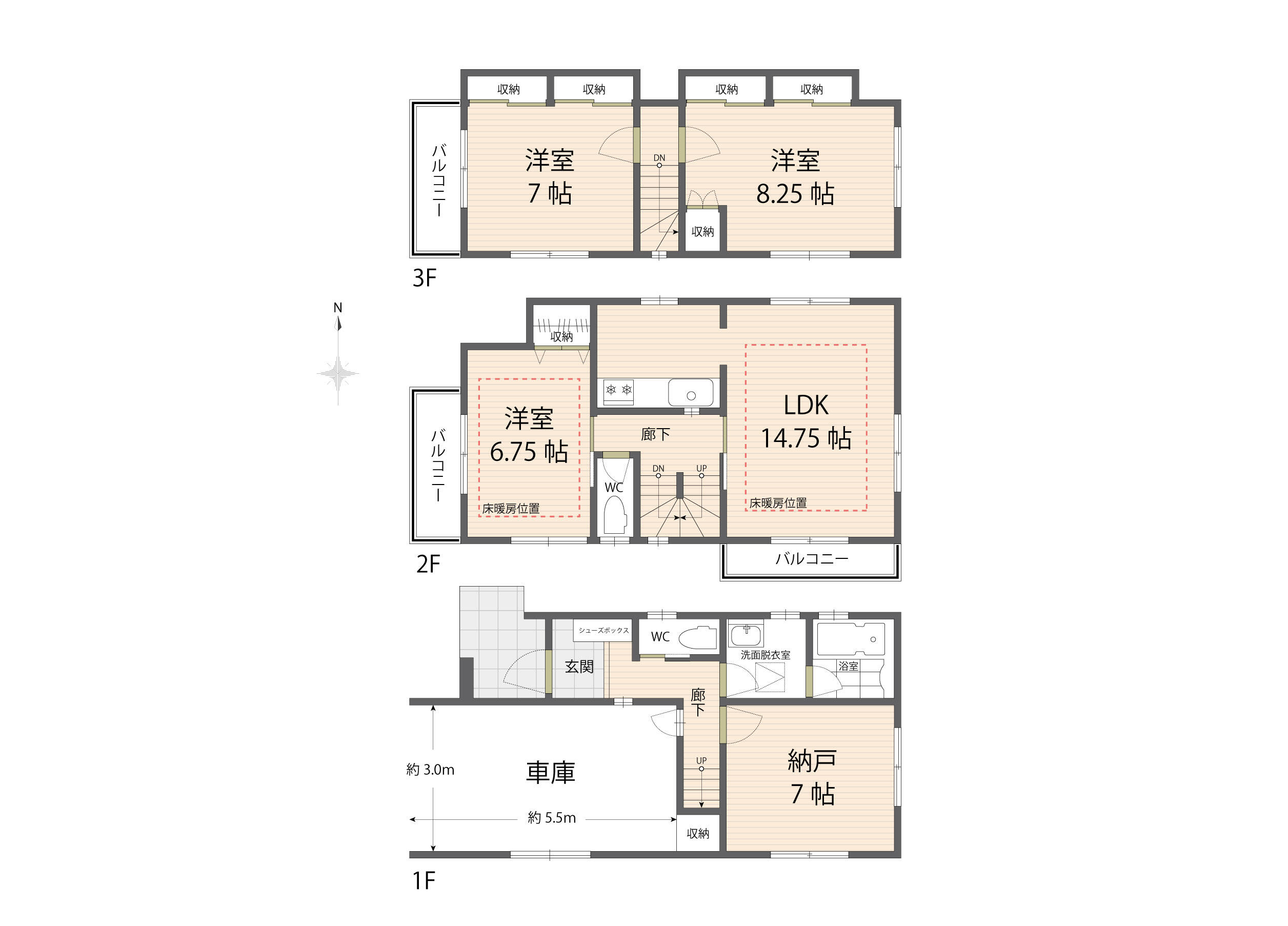 | 建物面積 | 123.61㎡(ガレージ部分含む) |