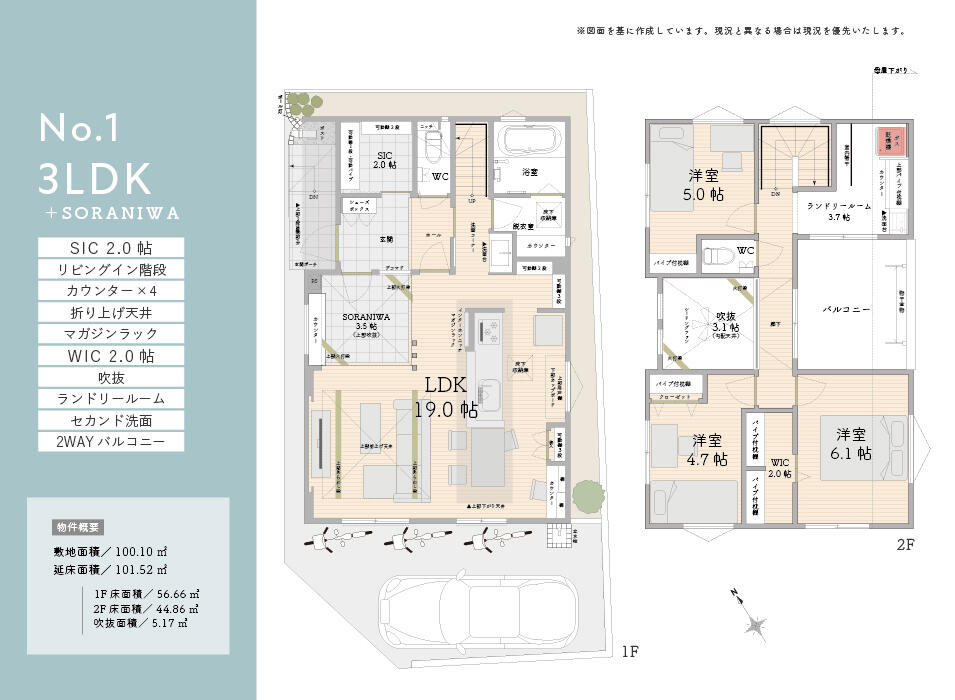 | 建物面積 | 【新築分譲住宅】101.52㎡~104.53㎡ |