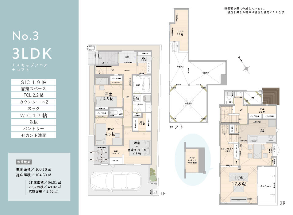 | 間取り | 【新築分譲住宅】3LDK+SORANIWA・3LDK+スキップフロア+ロフト |
