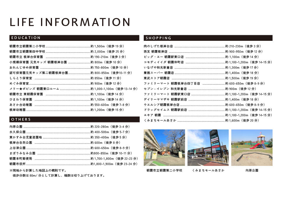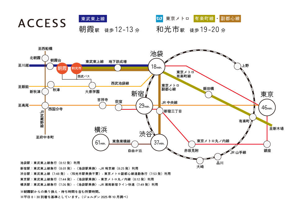 | 交通 | 東武東上線「朝霞」駅 徒歩12~13分 東武東上線・東京メトロ有楽町線・副都心線「和光市」駅 徒歩19~20分 |