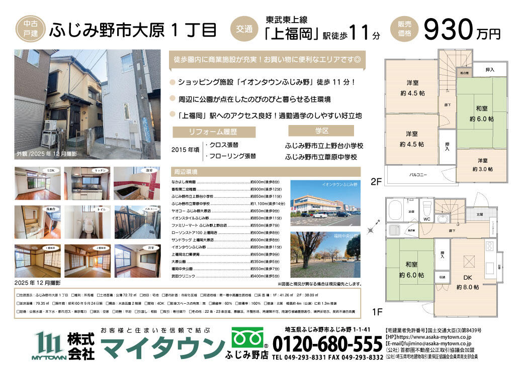 | 物件名 | ふじみ野市大原1丁目 中古一戸建住宅 |