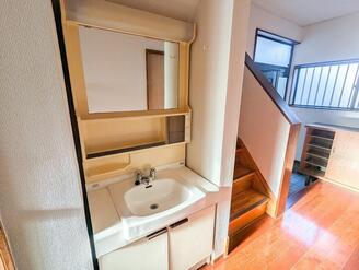 廊下に設置された洗面台で帰宅後すぐに手を洗うことができます。 -
