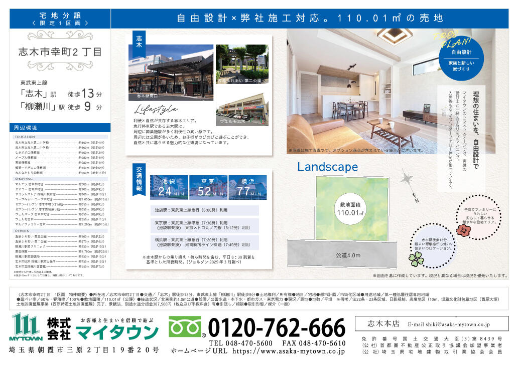| 物件名 | 志木市幸町2丁目 宅地分譲 限定1区画 |