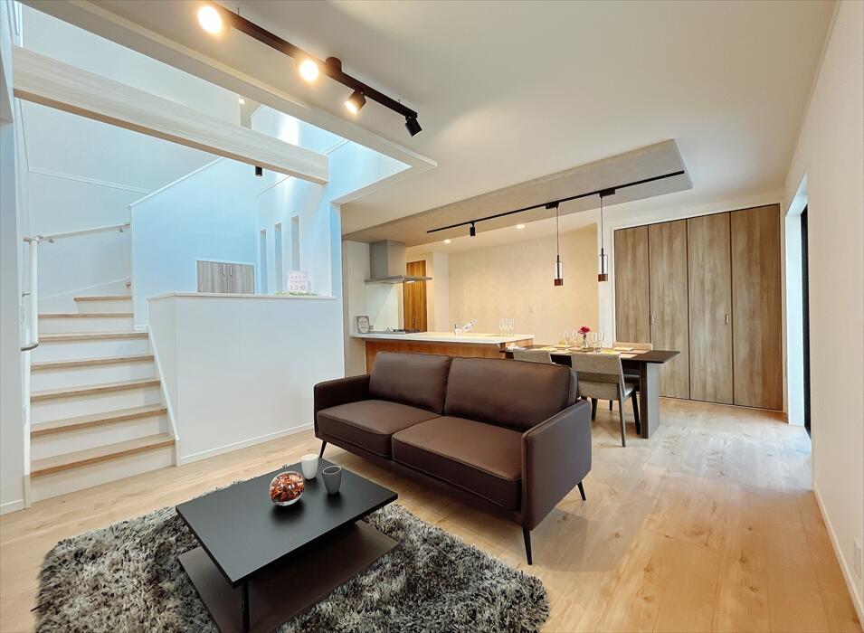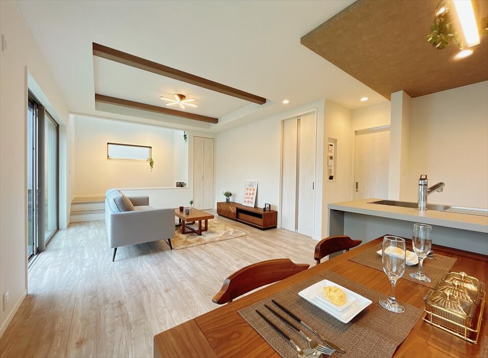ご家族が自然と集まりやすい、ゆとりある広々LDK。毎日の団らんや来客時にも使いやすい空間です。 -