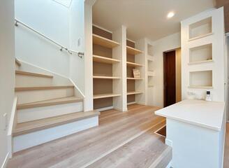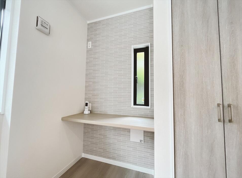 学習や在宅ワークに便利なスタディカウンター付き。お子さまの勉強や家事スペースとしても活躍します。 -