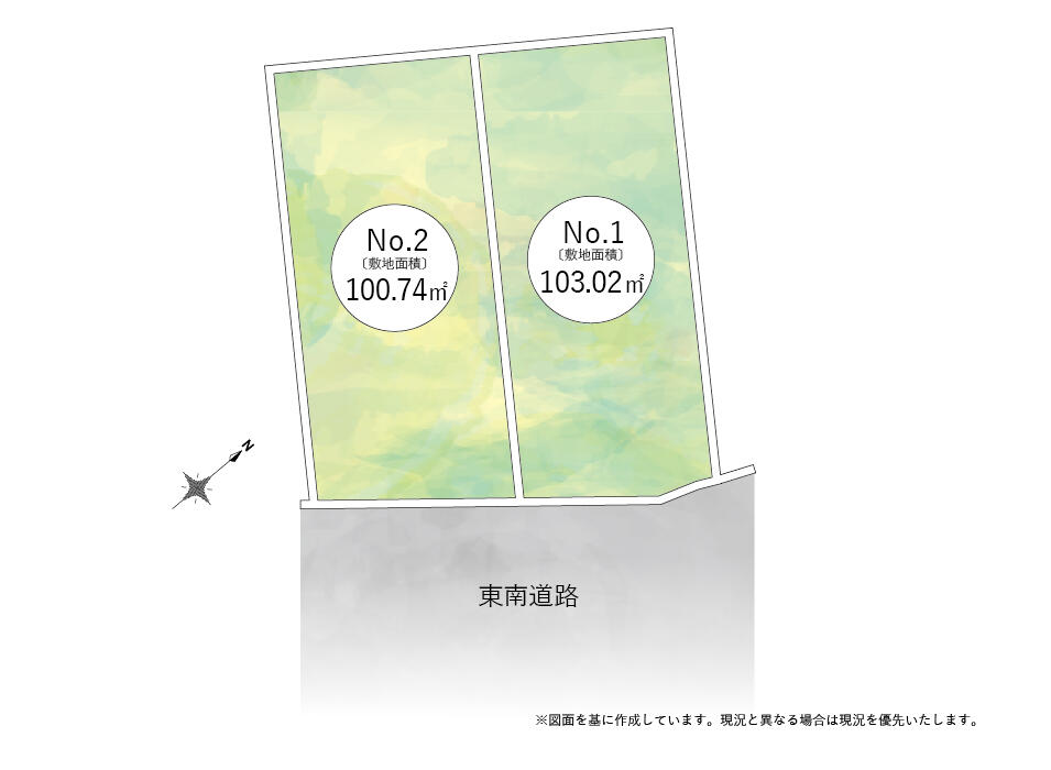 陽当たりの良い南東道路に面した全2区画の分譲地です。 -