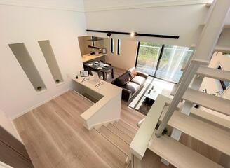 空間に立体感を生み出すスキップフロア。高さの異なるフロアが遊び心を演出します。