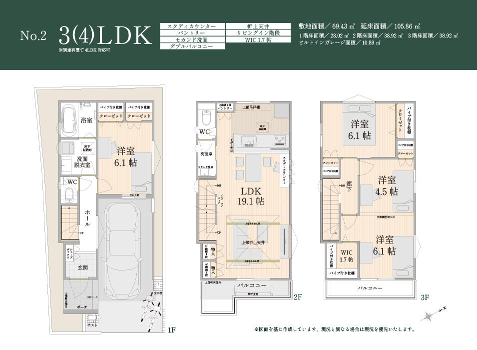 | 建物面積 | 96.61㎡・105.86㎡ |