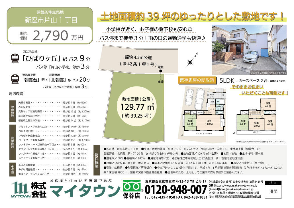 | 物件名 | 新座市片山1丁目 建築条件無売地 全1区画 |