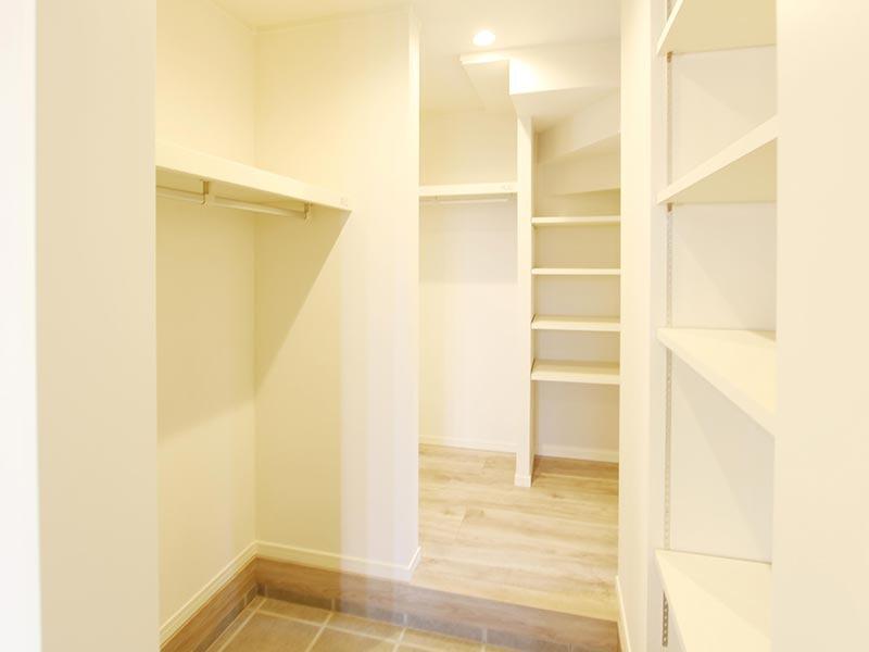衣類のほかにも季節家電、スーツケースなど嵩張る荷物の収納にも便利な枕棚付きのWIC。