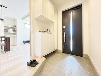 大容量のシューズボックスが標準で付くのでスッキリした玄関ホールを維持できます。
