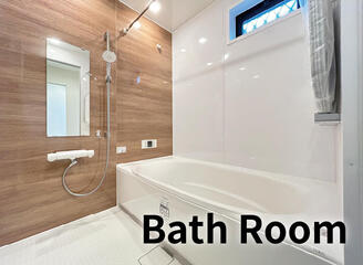保温性が高くお湯が冷めにくいサーモバス、水はけのよい溝つきの材質に加え、冬でも冷たさを感じにくいサーモフロアをはじめとした機能性に優れたシステムバス。 -