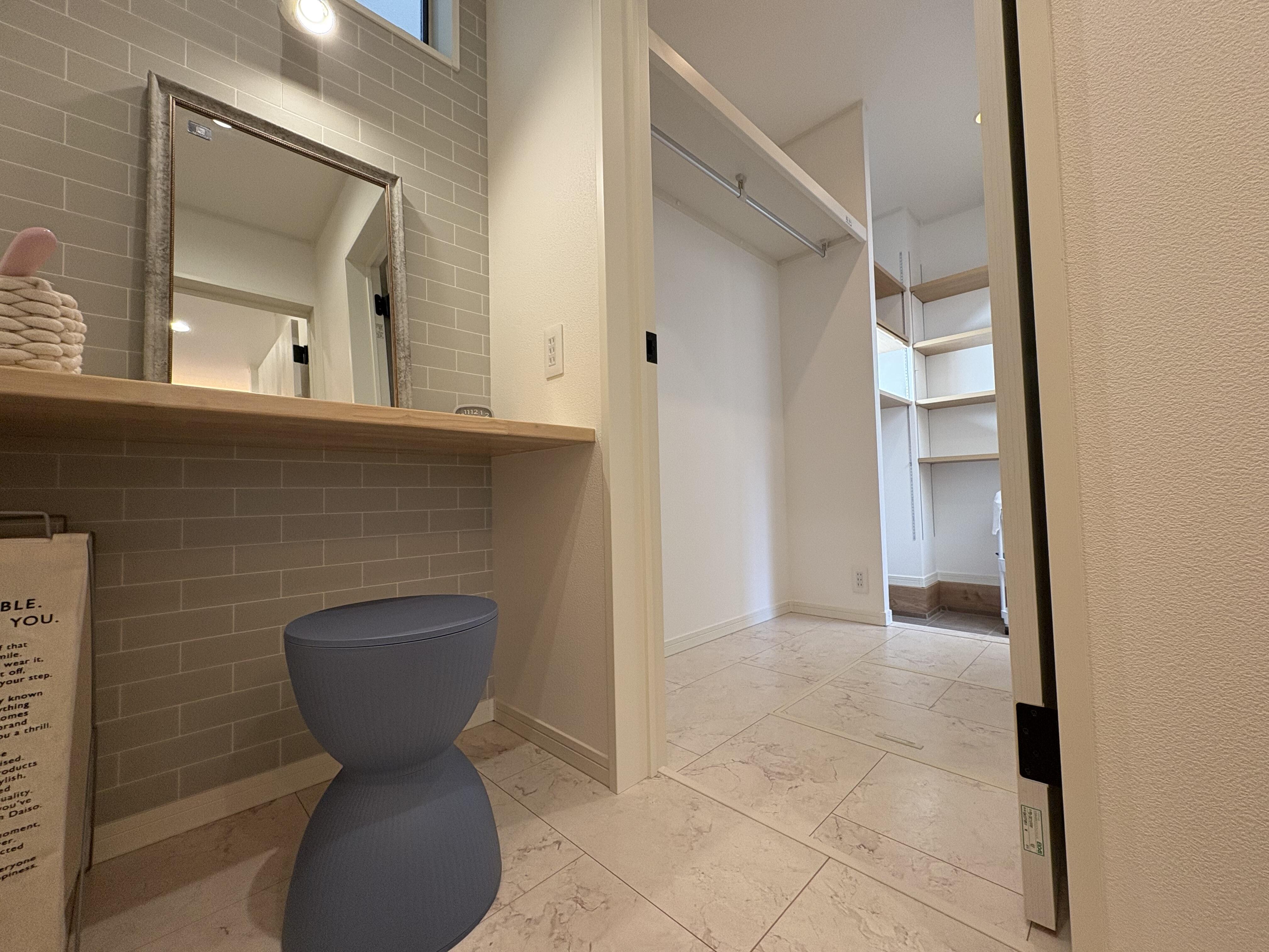 洗面⇔ファミリークローク⇔玄関をつなぐウォークスルー仕様なら、モーニングルーティーンの効率化にも期待が高まります。 -