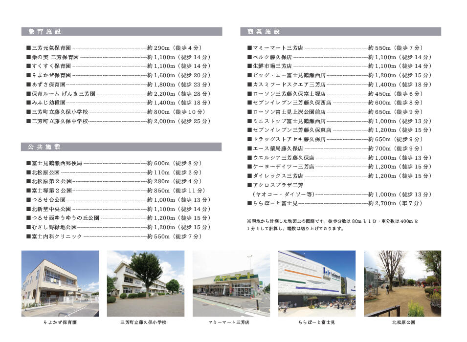 | 設備 | 公営水道・公共下水・都市ガス・東京電力 |