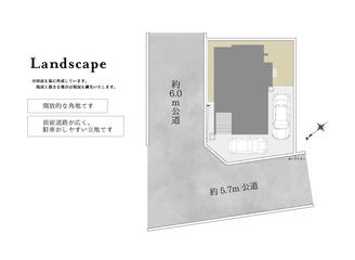 前面道路は5.7m~6.0mと広く駐車がしやすい立地。カースペースには駐車2台可能です。※車種による -