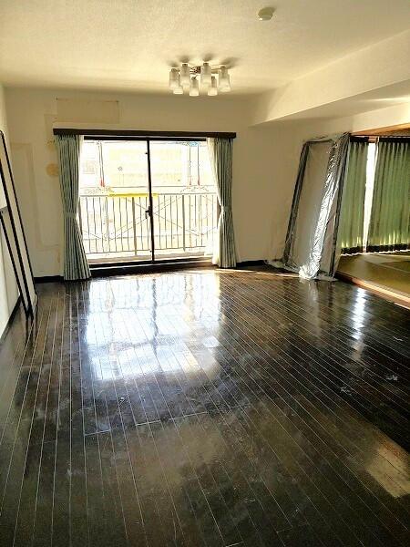 約18.0帖の広々としたリビングです!南向きのバルコニーからたっぷりと陽ざしが入る明るい空間。