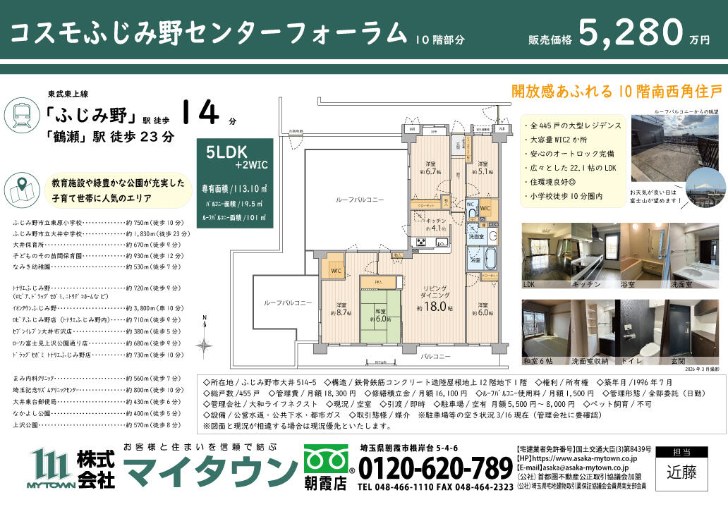 | 物件名 | コスモふじみ野センターフォーラム 10階部分 |