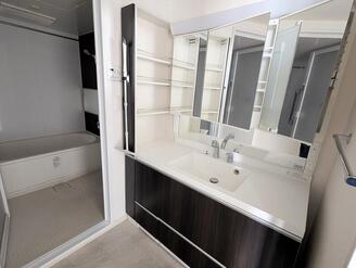 三面鏡付きで使い勝手の良い洗面化粧台。 -